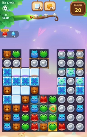 毛球是本关另一个需要灵活应对的障碍。它会随机移动并盖住动物,有时会恰好挡住你计划中的关键位置。当遇到这种情况时,不必固执于原定路线,可以暂时转移目标,先去处理其他区域的冰块或设法生成特效,等待毛球移动后再继续执行原计划。冰雪块的清除顺序也影响效率,当角落的冰块被多层围困时,可能需要配合特效或从外围层层剥离。游戏局面是动态变化的,需要你根据毛球的位置和动物掉落的情况,实时调整消除的优先级和策略。